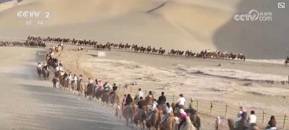 r甘肃敦煌:景区骆驼开启“朝五晚九”模式